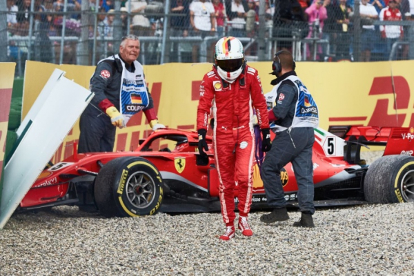 Следующий этап проходил на «Хоккенхаймринге», и всё складывалось ещё лучше: Феттель лидировал, его напарник Райкконен шёл вторым, а «Мерседесы» занимали лишь третье и четвёртое места. Однако на 52-м круге Себ ошибся в 13-м повороте — «Феррари» вылетела с трассы, ударилась об отбойник и застряла в гравии. Победу в той гонке в итоге одержал Хэмилтон, а для Феттеля борьба за титул фактически закончилась — в последующих гонках «Феррари» лишь изредка удавалось опережать «Мерседес».