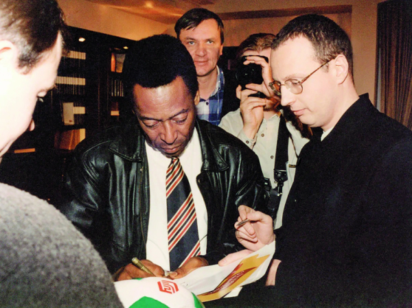 Я до сих пор помню точную дату нашей первой встречи с Пеле — 21 января 1997 года. В зал он зашел быстрым уверенным шагом, был приветлив и очень обаятелен. Общался так, будто мы давно знакомы. Меня впечатлило, что он в белой рубашке и галстуке. Я никак не ожидал от него такого парадного стиля. Наверное, сказывалось то, что Пеле был тогда министром спорта Бразилии. Хотя вел себя он отнюдь не как чиновник в привычном понимании.
